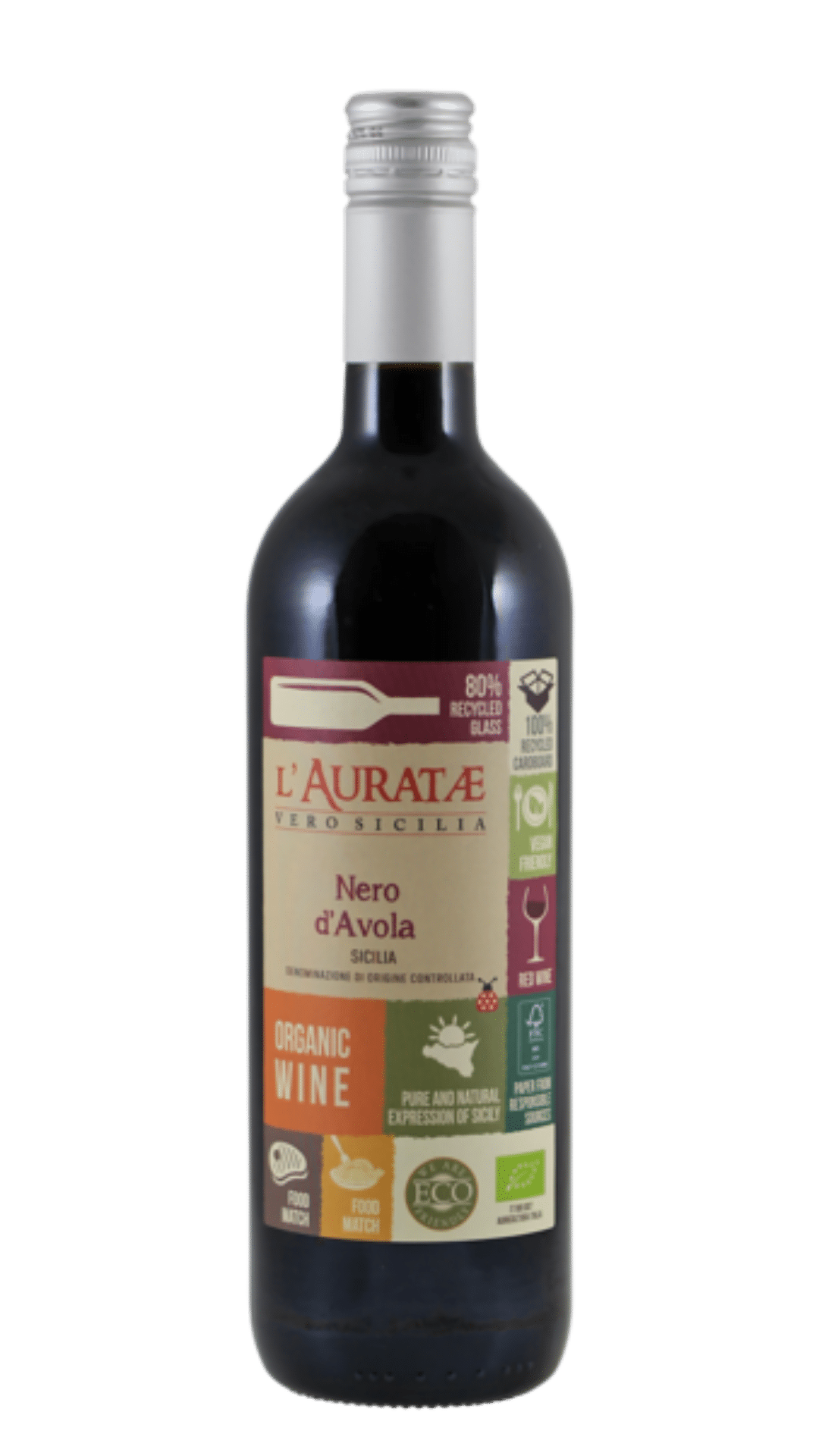 Deze frisse en mineralige Nero d’Avola groeit op de ijzerrijke Terra Rosso bodem. De wijn is licht van structuur, met veel rood fruit zoals zure kersen en frambozen, mediterrane kruiden en een typisch Italiaans bittertje in de afdronk. Met een medium body en levendige zuren is hij makkelijk en veelzijdig. Perfect bij een pasta Puttanesca of Arrabbiata, maar ook prima licht gekoeld te drinken in de zomer. Duurzaam geproduceerd, van druif tot verpakking.