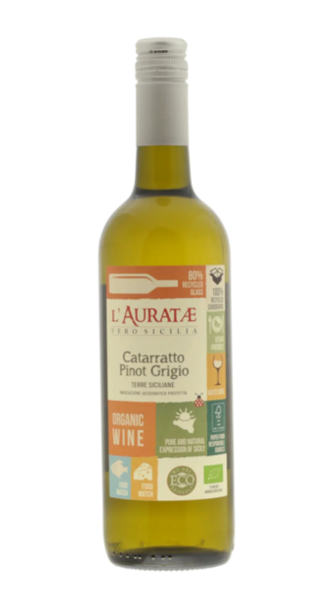 Deze frisse wijn combineert de lokale Catarratto met het noordelijke Pinot Grigio. Het resultaat is een zuivere, eerlijke wijn vol krokante citrus en tropisch fruit, met een subtiel ziltig accent. Puur plezier uit het Siciliaanse terroir, duurzaam en zonder poespas. Lekker als borrelwijn, bij salades of om het vet van sardientjes te breken. Gauw in de koelkast!