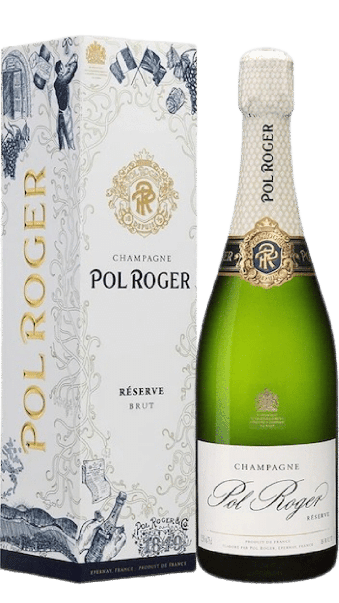 Een blend van gelijke delen Pinot Noir, Pinot Meunier en Chardonnay. Deze druiven zijn afkomstig uit 30 verschillende percelen. Vervolgens wordt er 25% reservewijn toegevoegd om de Champagne te produceren. De Champagne Brut Réserve rijpt na vinificatie nog vier jaar in de kelders. Dit leidt tot een gebalanceerde en complexe Champagne met florale en fruitige tonen. Peer, mango, kamperfoelie en jasmijn verrijkt met wat vanille en brioche. Een combinatie van fruit en specerijen blijft de neus nog lang na prikkelen. In de mond vormen smaken van gekookt fruit, bijenwas en acaciahoning een harmonieus samenspel. Een wijn vol balans in body en frisheid. Pol Roger is door Drinks International uitgeroepen tot ‘Most Admired Champagne Brand 2019’.