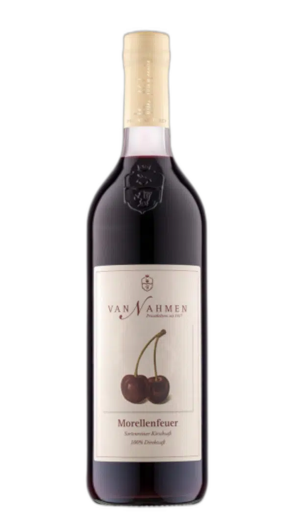 Deze pure 100% kersensap wordt gemaakt van de Morellenfeuer-kersen, die met zorg worden geteeld door kleinschalige boeren in de regio van Aken. De kersen, geoogst in juli, staan bekend om hun verfijnde aroma’s en milde zuren. Het resultaat is een natuurlijke, volfruitige sap met een frisse en zachte smaak, heerlijk puur of als basis voor cocktails en culinaire creaties.
